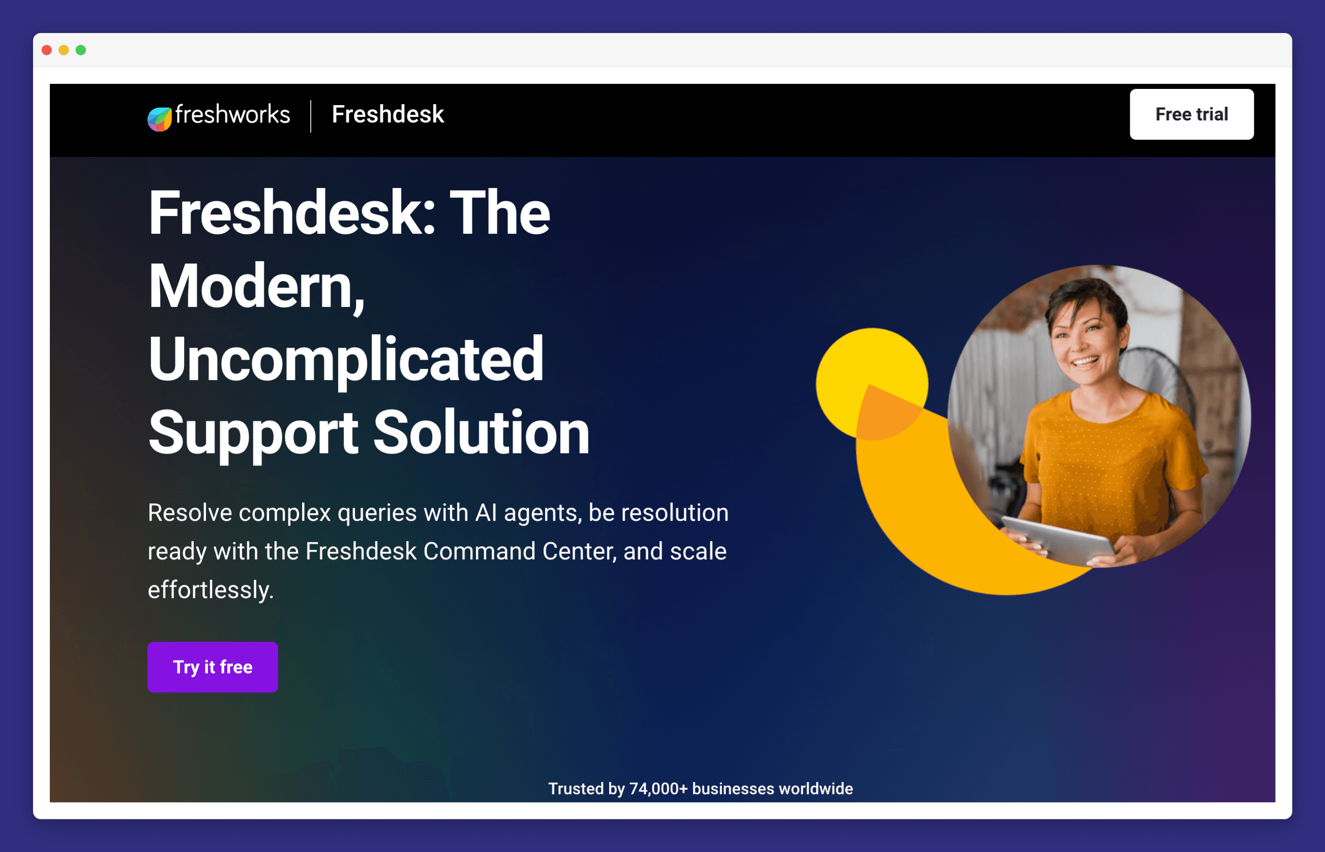 Freshdesk is one of the most common platforms teams move to when Intercom's pricing or complexity becomes an issue. It has a native knowledge base, a built-in AI agent called Freddy, and a ticketing system that is more structured than Intercom's conversation-first approach.