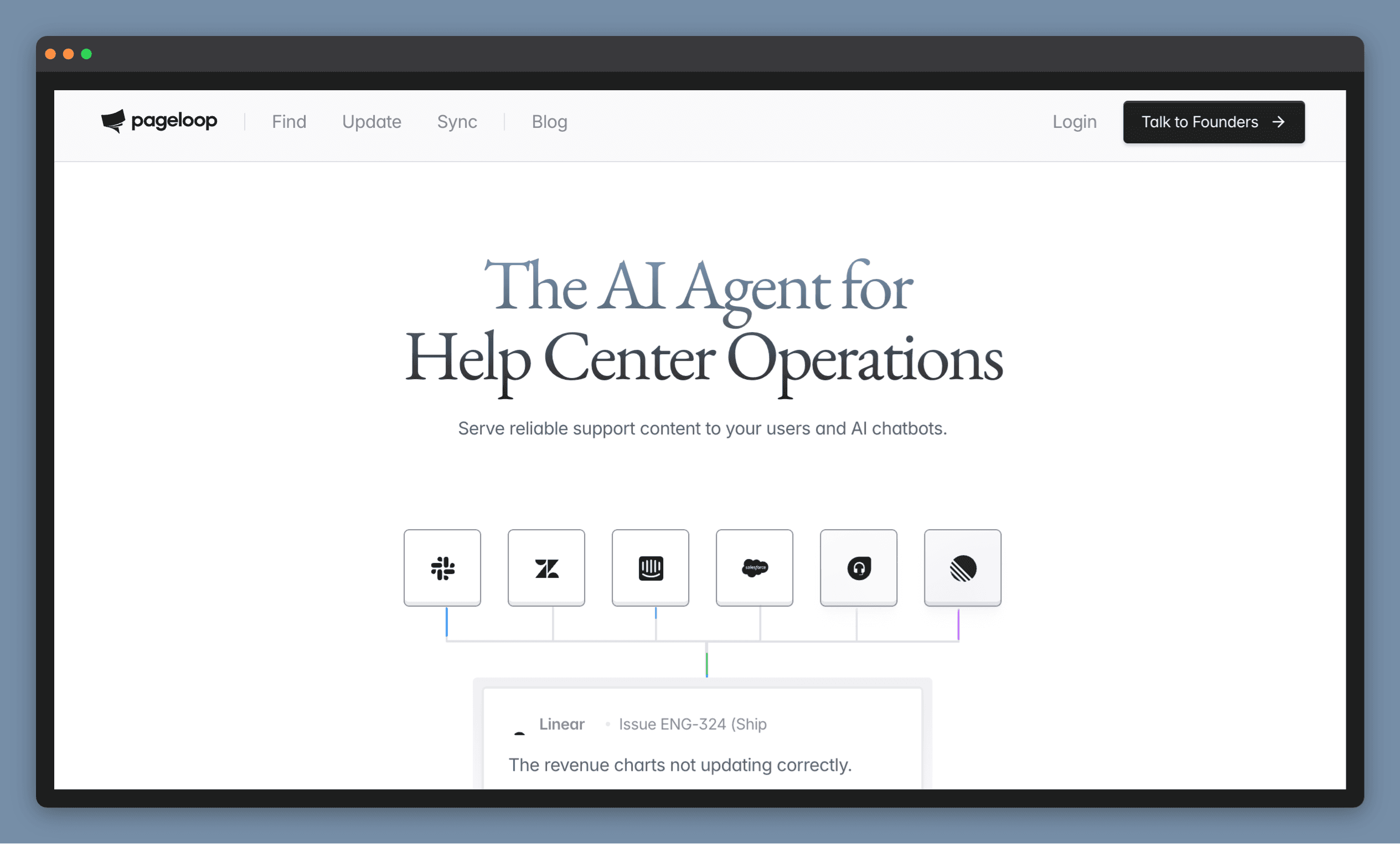 Pageloop approaches documentation from the other direction. Rather than giving you a better way to only write articles, it also helps you figure out which articles need updating after each product release and then rewrites them for you to review and approve before anything goes live. Pageloop pulls from signals like resolved Support tickets, Slack conversations, Linear or Jira tickets, Github and combines them into suggestions for articles to create and update. It rewrites the outdated sections in your original writing style, flags screenshots that need replacing, and puts everything in an approval queue. Nothing goes live without a human sign-off. It connects with help centers like Zendesk, Intercom, Mintlify, Freshdesk, Salesforce, Helpjuice and Document360.